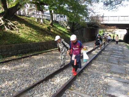 インクラインを実物で見た子どもたちは,「これがインクラインか!」「すごい迫力だ!」「これを使って荷物を運んでいたなんてすごい!」など,色んなことを感じていました。