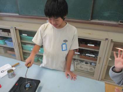 この日は,「金属の温度が変わると,金属の体積はどうなるのだろうか」を調べました。実験を通して,熱すると金属球の体積が大きくなること,冷やすと体積が小さくなることが分かりました。