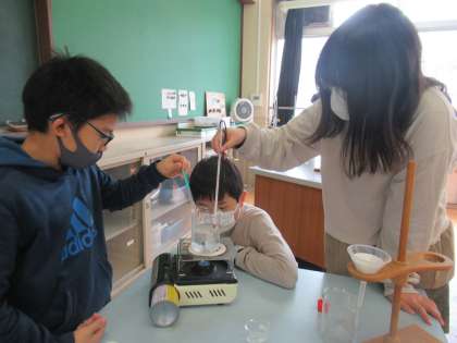理科の「もののとけ方」の学習で,ミョウバンの結晶づくりに挑戦しました。まずは,温めてミョウバンを溶かし,ろ過していきます。そして,ろ過したろ液をみんなで分け,冷やしていきます。どんな結晶が出来上がるのでしょうか。楽しみです!