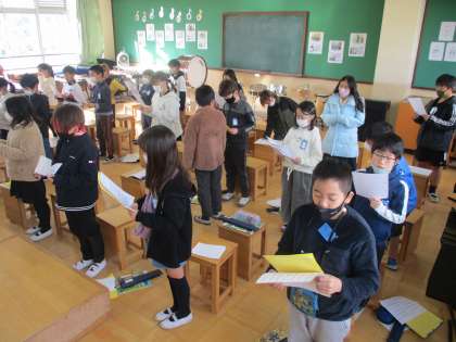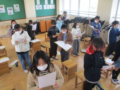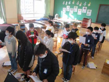 授業の最初,クリスマスが近いので,ピアノ伴奏に合わせてクリスマスソングを歌いました。