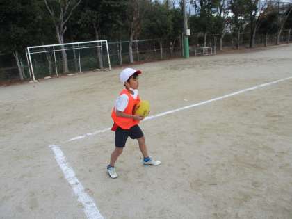体育科では,陣取り遊び(タグラグビー)の学習をしています。