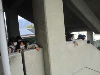 21日の午後,一人の子どもの「虹だー」という大きな声で,たくさんの4年生が集合しました。