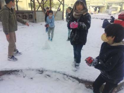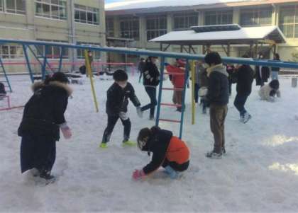 せっかくなので、1時間目にみんなで思いきり雪遊びをしました。久しぶりに目にするたくさんの雪に、大喜びの子ども達でした。