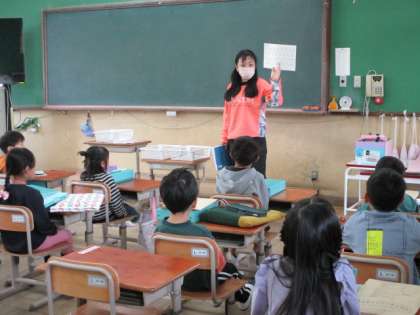 1年生の教室では、まず、「先生に出すもの」をしっかりと教えていただいていました。