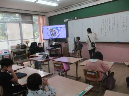 道徳科の学習では、動物たちの学校の絵を用いて、いいこととわるいことについて考えました。子どもたちは、「友だちを助けている」「きちんと協力してそうじをしている」などの良い行動や、「友だちをばかにしている」「すなをかけている」などの悪い行動について考えることができていました。