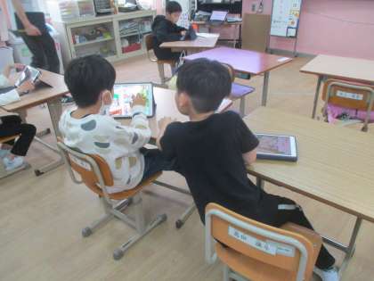 ロイロノートを用いて、友だちと相談したり、みんなの前で発表したりできました。