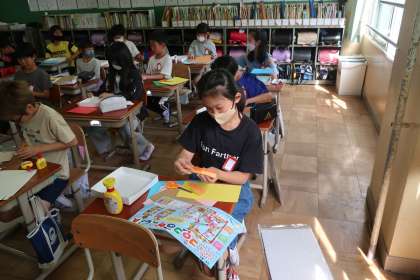 段ボールや画用紙を使って工夫して作っています。