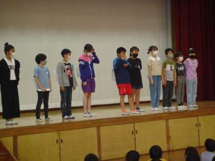 初めに、本部・集会の委員会の5・6年生が、お迎えの言葉を伝えてくれました。