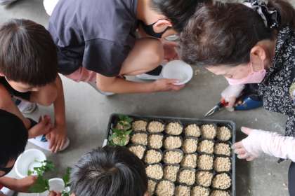 切ったフジバカマの苗木を、苗カップにうつしました。