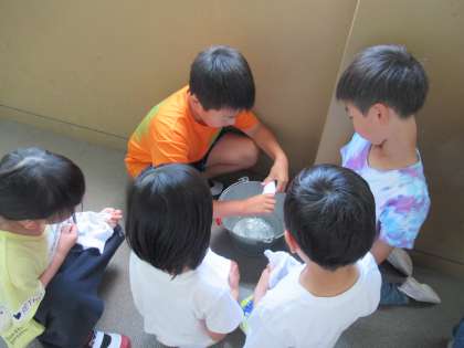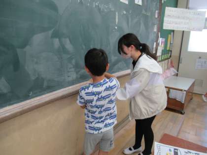5月から6年生は1年生の教室に掃除のお手伝いに行っています。ほうきのはき方やぞうきんのしぼり方、黒板の掃除の仕方など、役わりに分かれて教えている6年生。そして一生懸命聞いて、真似している1年生。見ていてとてもほほえましい光景でした。最高学年として頑張れ!!