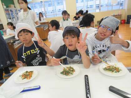 どのグループも、協力してとても上手に調理することができました。野菜のあまみを感じることのできる素敵な「いろどり炒め」が完成しました。また、おうちでも作ってみましょうね!