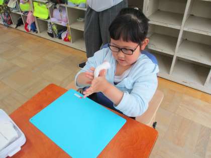 特に粘土の学習は大好きです。ひものかたちを作ってからいろいろなもの作りました。