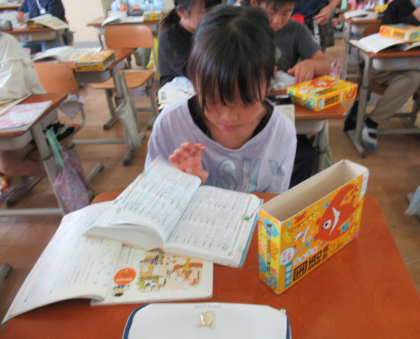 早速、気になる言葉や教科書「言葉のたから箱」に記載されている言葉を調べていた子ども達。これから、繰り返し使うことで、国語辞典を使いこなせるようになりそうです。