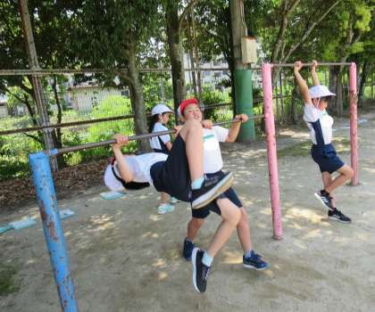 「できた!」と満面の笑みで伝えてくれる子や「こうもりふり下りができはった!」とまるで自分のことのように喜んでいる子などがいました。