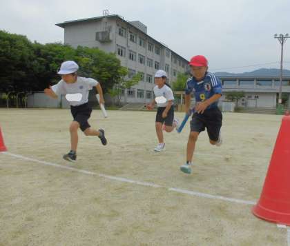 体育科「リレー」の学習のまとめとして、学年でリレー大会をしました。代表委員が司会やはじめの言葉、終わりの言葉を担当して、進めてくれました。みんな学習したことを活かして、最後まで一生懸命走り切りました。振りかえりでは、「みんな一生懸命走っていてすごかった。」「勝っても負けても一生懸命走れた。」とみんなの頑張りをお互いに称える姿がありました。学級を超えて、刺激し合える3年生、素敵です!