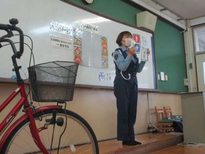 8日(木)5・6年生を対象とした自転車教室が行われ、自転車の正しい乗り方について、西京署交通安全課の方に教えていただきました。