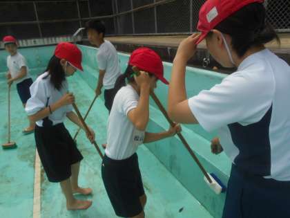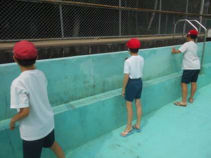 6年生が中心となってプール清掃を行いました。みんなで協力することであっという間にきれいになりました。1年生にとっては小学校生活初めてのプールです。6年生ピカピカにしたプールで水遊びを精一杯楽しんでほしいと思います。6年生のみなさんありがとう。