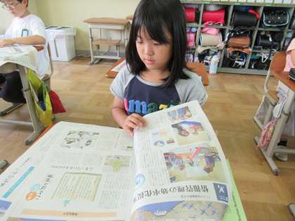毎週配布される『ジュニアタイムズ』。どんな記事が載っているかを説明すると、いろいろな発見があったようでした。