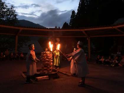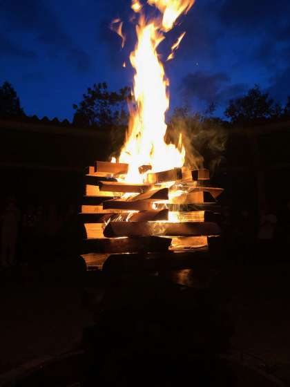 炎が天高く舞い上がります