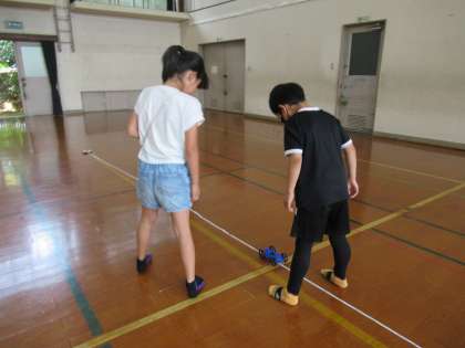 「風が強い方が進んだ。」「ゴムを長くした方が遠くまで行った。」と、実験をすることで、風やゴムに力があることやそれらには、共通点を考えることができました。