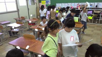 今日から2学期が始まり、国語の学習では夏休みにかいた絵日記を交流しました。子どもたちは目を輝かせながら、楽しかった出来事を教えてくれました。