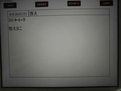 子どもたちは、GIGA端末「えにっき」アプリを使って、初めのページに問題を入力し2枚目のページに答えを書きます。