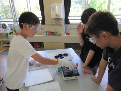理科で水溶液の性質について学習しています。いろいろあ水溶液の見た目やにおい、温めた時のちがいなどを実験で調べていっています。明日の自由参観でも理科を参観していただけますので、子どもたちといっしょに水溶液の世界をぜひ楽しんでみてください。