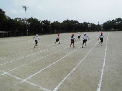 体育参観に向けて、今日は50メートル走の練習をしました。初めて誰と一緒に走るかを知って、子どもたちもやる気満々!力いっぱい走る姿がとても素敵でした。