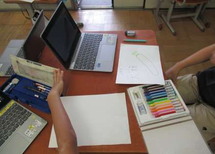 秋から新しく畑に植える「大根」のポスターを書いていました。