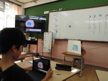 子どもたちは、真剣にテレビ画面に映る友達の発表を聞きます!