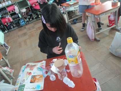 図画工作科では「空きようきのへんしん」の学習をしました。