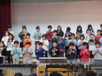 今までたくさん練習してきたことを全て出し切り、「緊張したけど、とても楽しかった。」「いっぱい拍手をもらえて嬉しかった。」とやりきった表情で教室に戻ってきた竹小音楽団4年生。