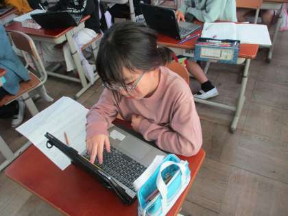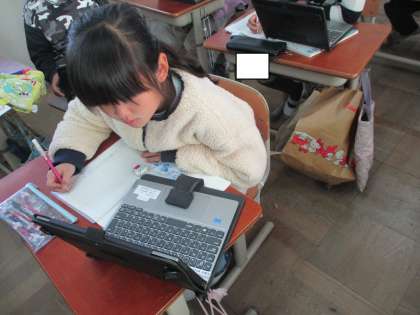 その後は辞典やタブレットを使って、ほかにどんなことわざがあるのかや、意味・使い方を調べました。「普段の会話の中でも使っていきたい」「自主勉強でもっと調べたい」など、子どもたちは興味津々で学習に向かっていました。