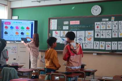 外国語活動「Alphabet」の学習で、大文字を伝え合う学習を行いました。