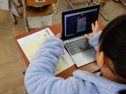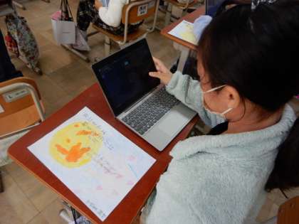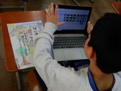 教科書に書かれている俳句をよみ、自分が気に入った俳句を視写したり、気に入った理由や思い浮かぶ風景をかいたりしました。かいた後は、写真に撮り、ロイロノートで共有しました。「俳句と風景がすごくあっていていいね。」「私もこの俳句が素敵だと思ったよ。」など色々な意見がでていました。