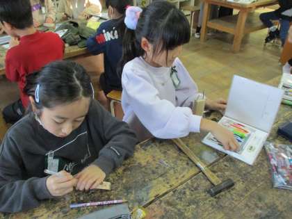 時間が経つにつれて,くぎ打ちが上手になった3年生。「えっもう終わり?」「もっとやりたい」そんな子どもたちの声がたくさん聞こえてくるほど楽しい時間を過ごしていました。