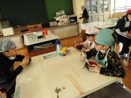 特別な大根で作った「特別な大根のみそ汁」を食べて子どもたちからは笑みがこぼれます。そして、「家でも作りたいな。」との声が。今回も家庭生活につながる素敵な学習の時間になりました。