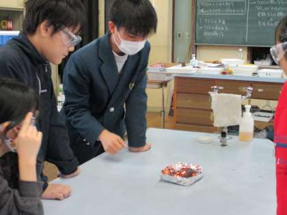 授業には、実験の助手をするために中学2年生の先輩も参加をしてくれていました。