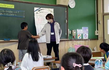 4年生の外国語活動では、「Hello, world!」の学習をしています。