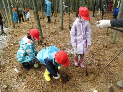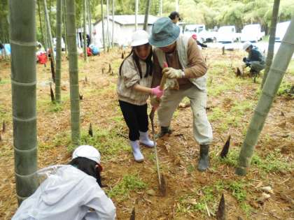 地域の人に手伝ってもらいながらたけのこを掘りました。