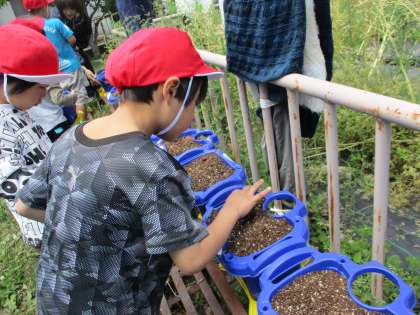 生活科の学習で8日に「あさがおの種」を植えました。