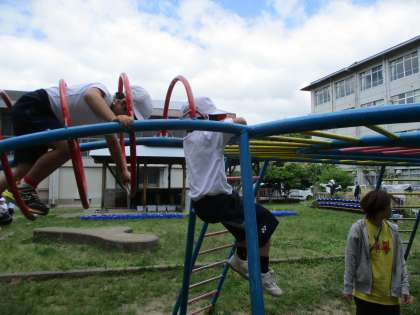 「両手でしっかり握って」「一歩一歩ゆっくりと」先生から教えてもらった注意をしっかり守りながら挑戦していました。