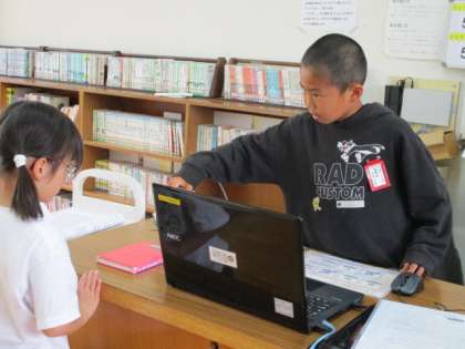 そのあと、5年生は、本の整理をしていました。「今日は、6年生が修学旅行の準備の仕事で来れないから、ぼくが一人なんです。」と伝えてくれました。「しっかりとできています。大丈夫です!」