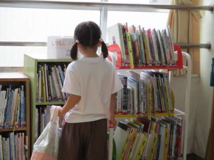 5月15日(水)、お昼休みに図書館をのぞきにいくと1年生がちょうど来ました。「本を返しにきました。」「はい!」と図書委員の5年生が迎えます。そして、返却の作業をしたあと「また、来てくださいね。」と1年生に声かけをしています。