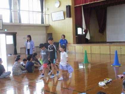 体育館をのぞいてみると、21日に実施する「1年生を迎える会」に向けて、1年生と6年生が合同で練習を進めていました。