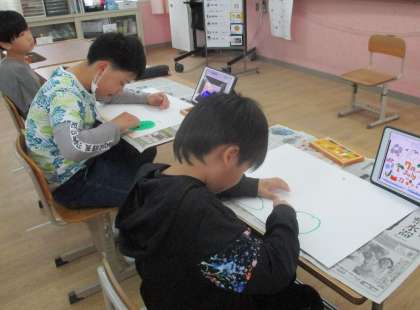 生活単元学習ではカレンダープロジェクトに取り組んでいます。毎月の季節のカレンダーを作って、学校のいろいろなところに届けています。「これは、保健室にもっていきたいな。」、「職員室に届けよう。」など、思いをもって作っています。