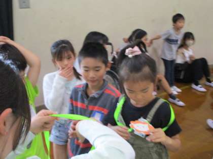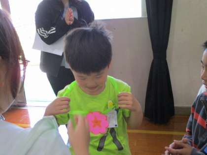 たて割りグループでのゲーム、学校クイズと大盛り上がりでした。そして、最後は、1年生にメダルのプレゼントです。