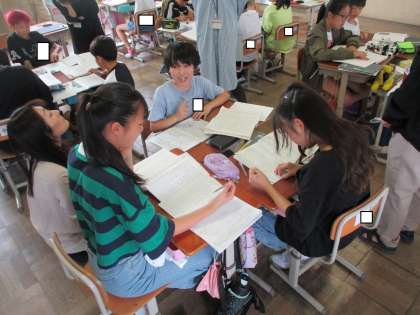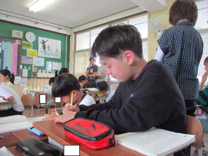 友達のノートを参考にしたり、話し合ったりと、「問い」を解決するために共に学び合う、協働的な学びの姿が大変素晴らしです。