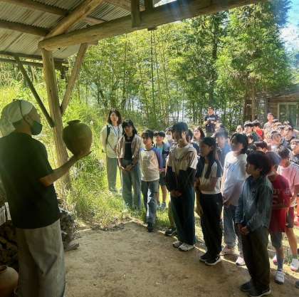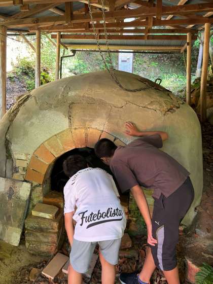 大きな窯を見せていただき、信楽焼について教えていただきます。