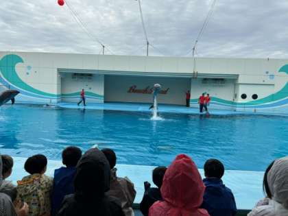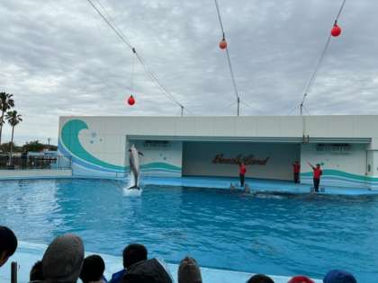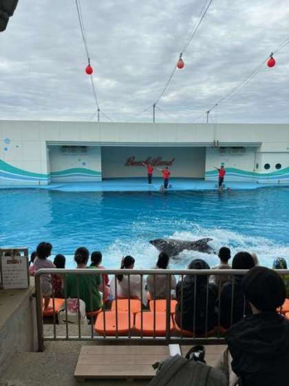 迫力のイルカショーにみんな大興奮です!